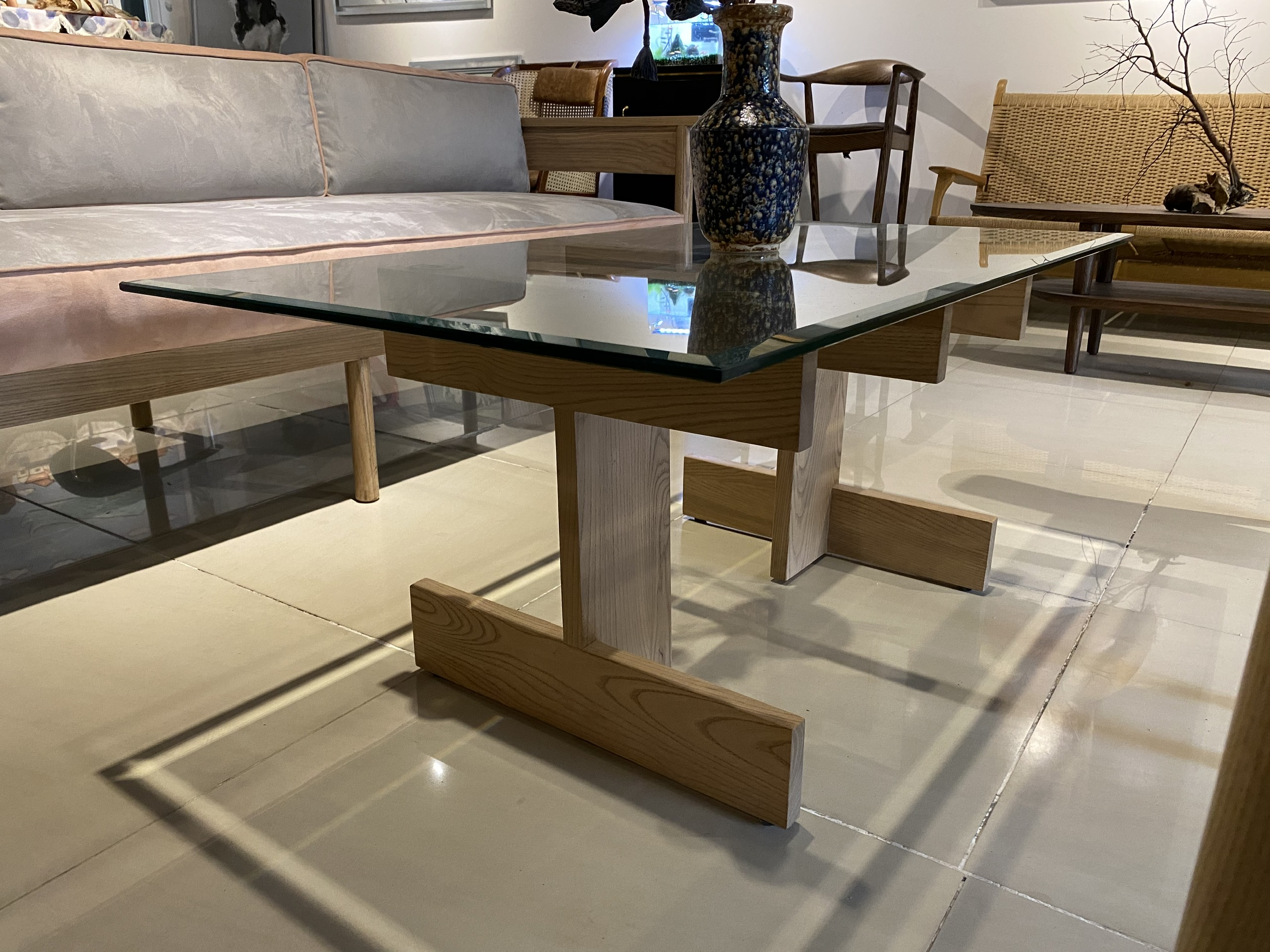 Chất liệu: gỗ Ash (Tần bì) kết hợp mặt kính cường lực.